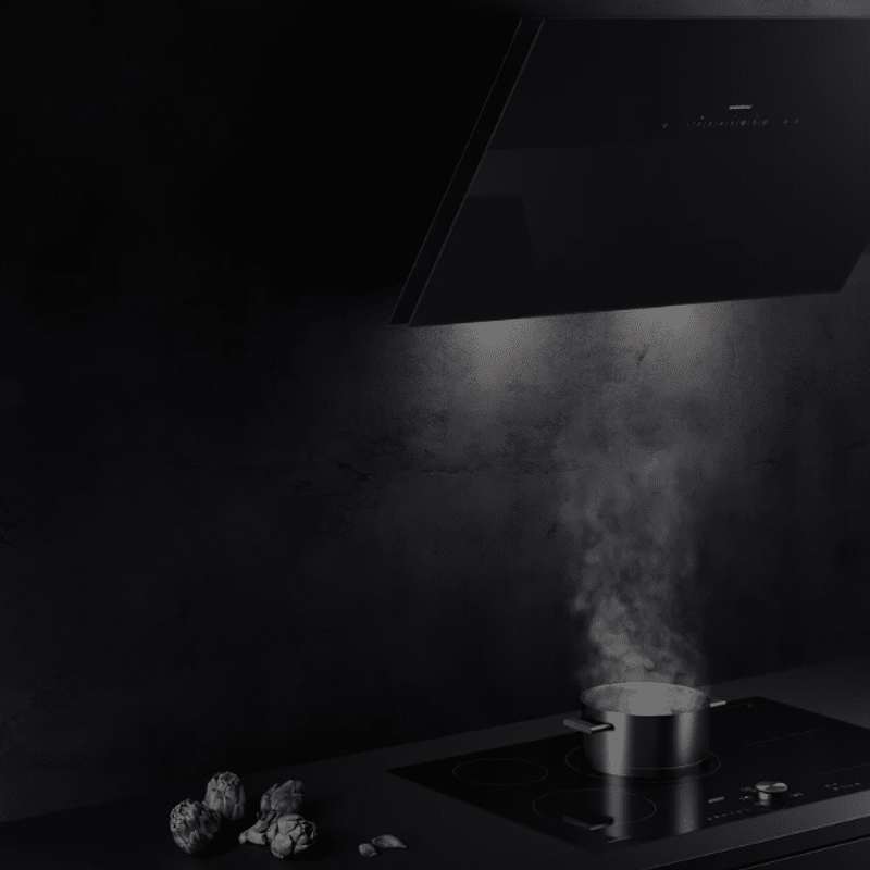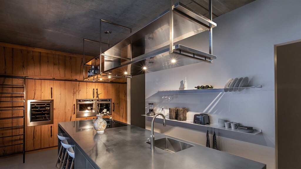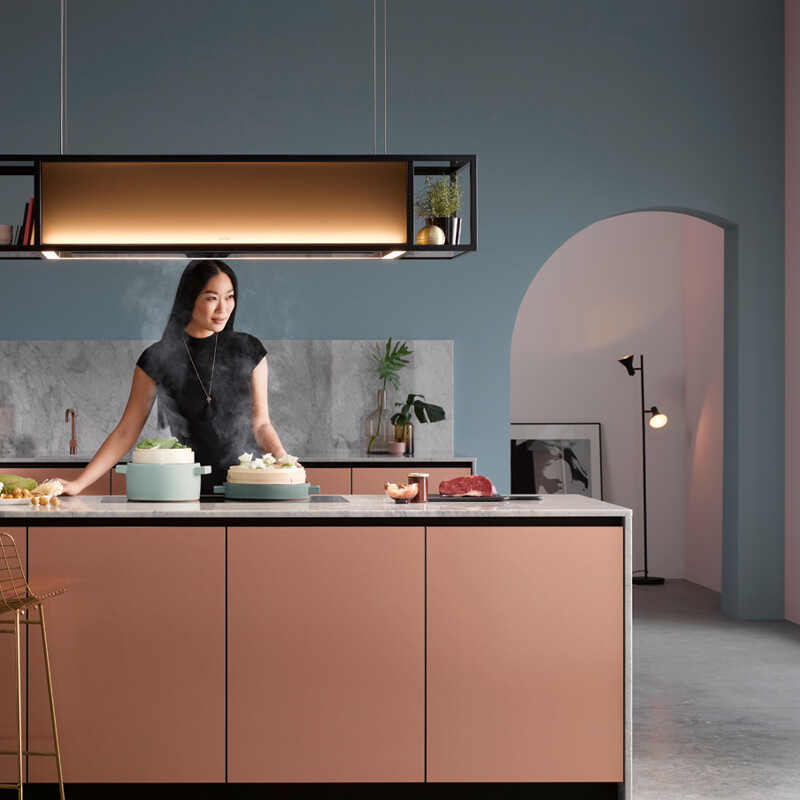De Nederlandse firma Wavedesign heeft zich geheel in afzuigsystemen en verlichting gespecialiseerd. Dat is te zien aan de prachtige collectie met bijzondere designkappen. Van een frame met afzuigunit, dat een volledig kookeiland overspant, tot vrijhangende elementen in staal, messing of zelfs bekleed met leer.