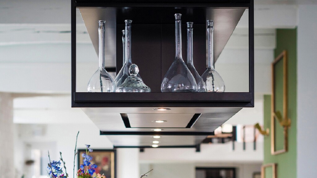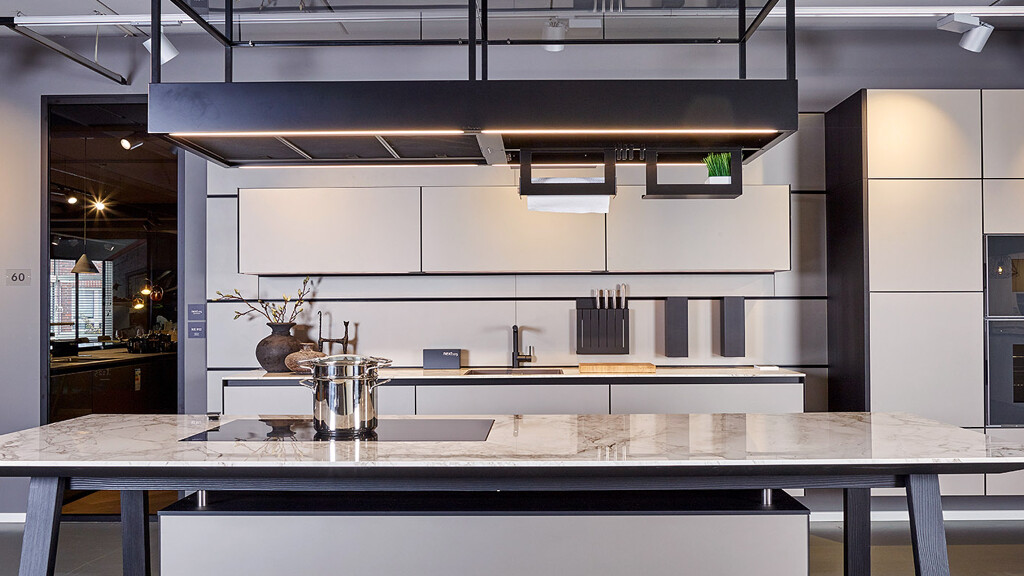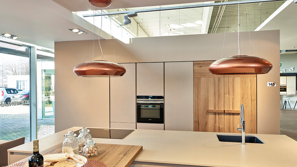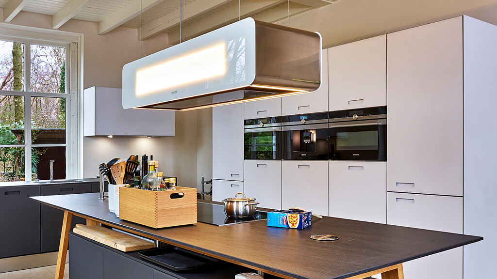 Misschien niet direct onder design-afzuigkappen te scharen, want een oplossing met een plafond-afzuiging is mooi door onopvallendheid. Omdat de afzuigmodule verder verwijderd is van de pannen, komt er meer vermogen aan te pas. Alle grote merken bieden hier goede oplossingen. Lees hier meer over onze keukenapparatuur-merken:
