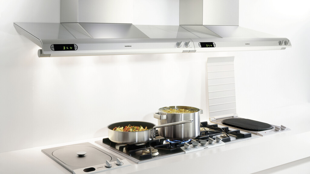 Niet alleen boven een kookeiland, ook voor aan de wand zijn er, naast de meer traditionele afzuigkappen, prachtige designoplossingen te vinden. Merken als Novy, Miele, Siemens, Bosch en Gaggenau bieden verschillende wandmodellen, ook verticaal of schuin geplaatst, de zogenaamde kopvrij-afzuigkap, zodat er geen hoofden kunnen worden gestoten. Ook kan een afzuigunit meer uit het zicht worden ingebouwd, in een schouw of in een bovenkastje.
