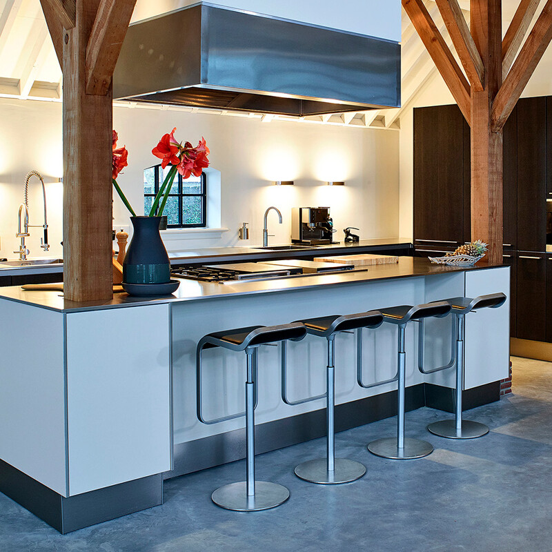 Onze klanten in Ouderkerk aan de Amstel verbouwden een oude koeienstal tot een prachtig woonhuis. Bij hun moderne landhuiskeuken met kookeiland, kozen zij voor barkrukken van Lapalma met een minimalistisch en lichtvoetig design. Barkruk LEM ontleent zijn naam aan de Lunar Excursion Module, de maanlander die in 1969 de eerste mens op de maan bracht. De LEM is verkrijgbaar in verschillende uitvoeringen en eindeloos veel kleuren en materialen.