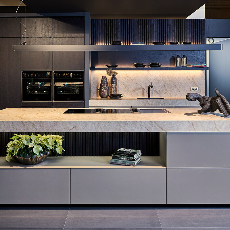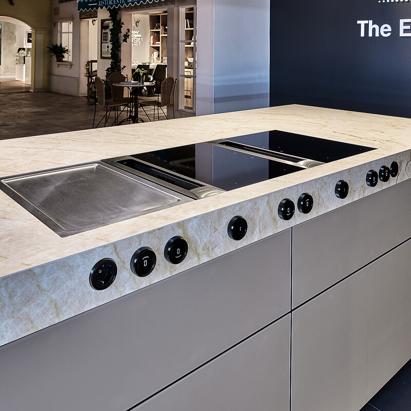 Dit is het vlaggenschip van BORA op het gebied van kookplaten met afzuiging. Net als de 2.0 serie gaat het hierbij om een modulair systeem, dat u aan uw eigen wensen kunt aanpassen. Hier is gekozen voor twee inductievelden en een TerriYaki plaat met twee afzuigmodules ertussen. Naast verschillende soorten inductievelden, kunt u ook kiezen voor een wok-kuil of een gaselement. Het bijzondere vande Professional 3.0 is de bedienknoppen op de voorkant van het werkblad zijn geplaatst. Dit ziet er niet alleen stoer en professioneel uit, het zorgt ook voor een intuïtieve bediening.